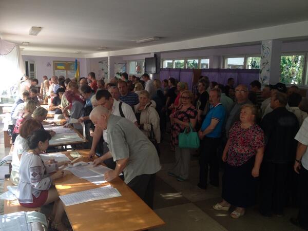 #вибори2014 #київ 10:05 аншлаг не закінчується, голосують, по 3 бюлетні на місцеві плюс президентські