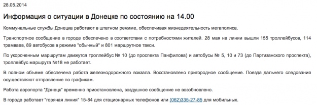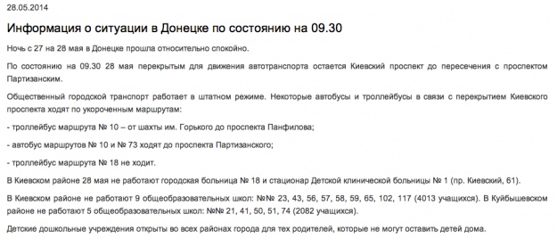 Ночь с 27 на 28 мая в Донецке прошла относительно спокойно.