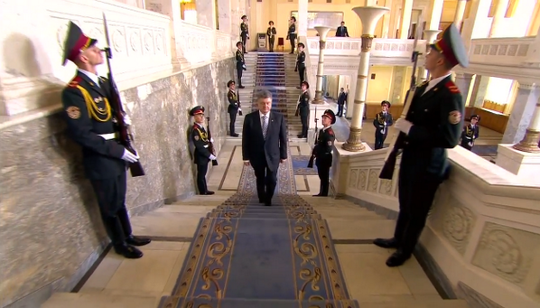 | Один із гвардійців зомлів, коли Петро Порошенко заходив до Ради. При виході - Порошенко справився про його стан |