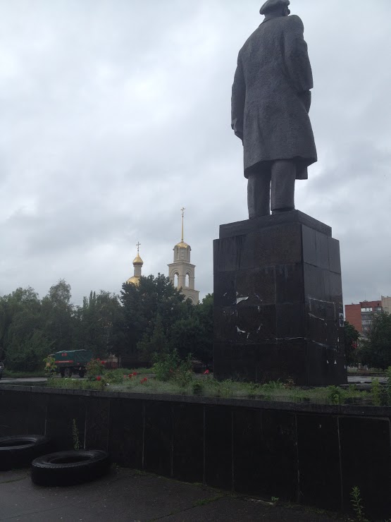| Ленін і церква. Сюрреалістичне поєднання на центральній площі Слов'янська |