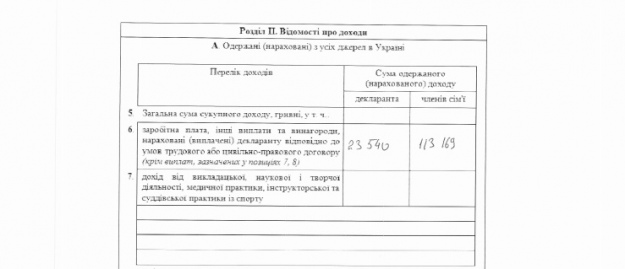 | Частина декларації Ситника, яку він надав членам конкурсної комісії |
