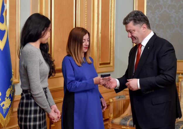 | Екатерина Сергацкова получила украинский паспорт из рук президента. Фото с сайта АПУ |
