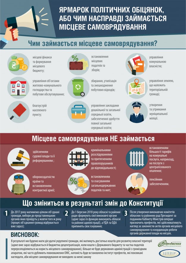 Ярмарок політичних обіцянок, або Чим насправді займається місцеве самоврядування. ІНФОГРАФІКА