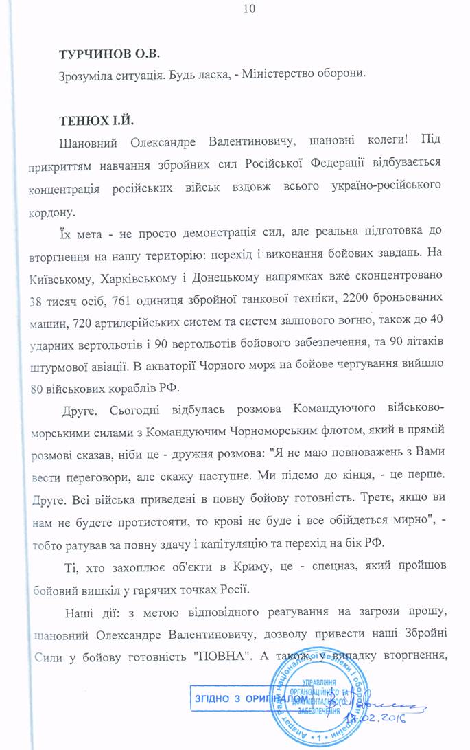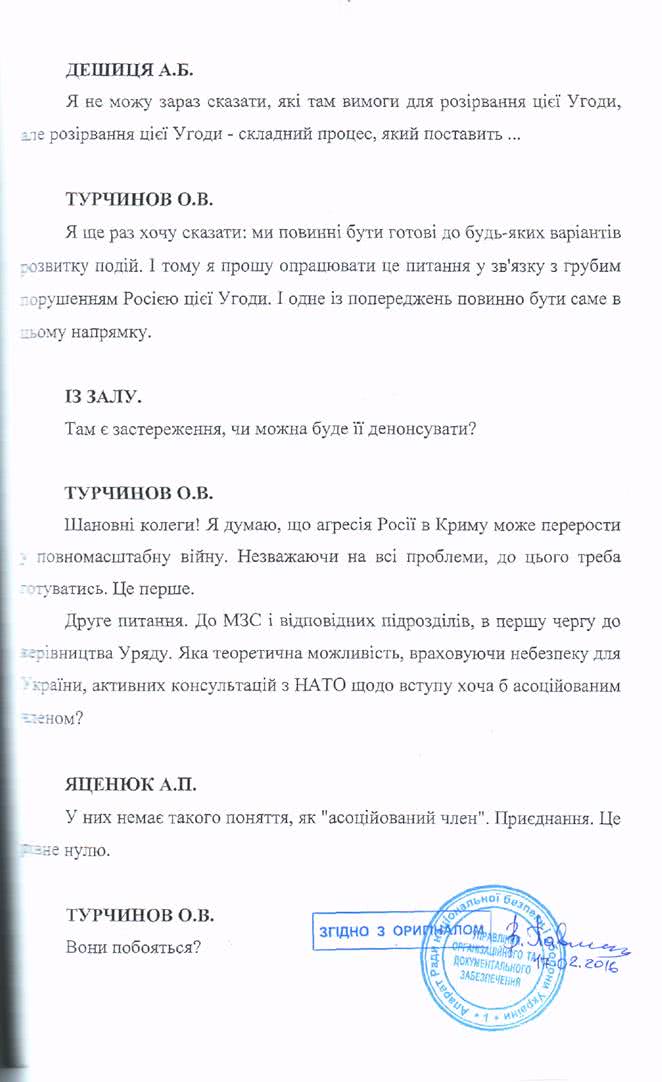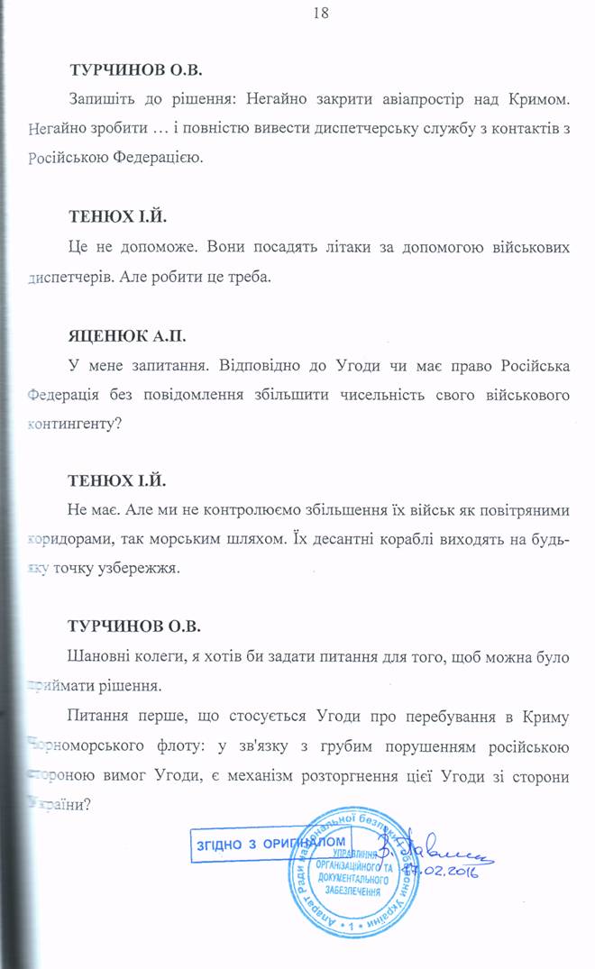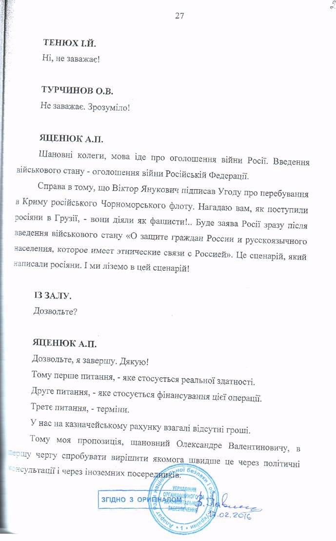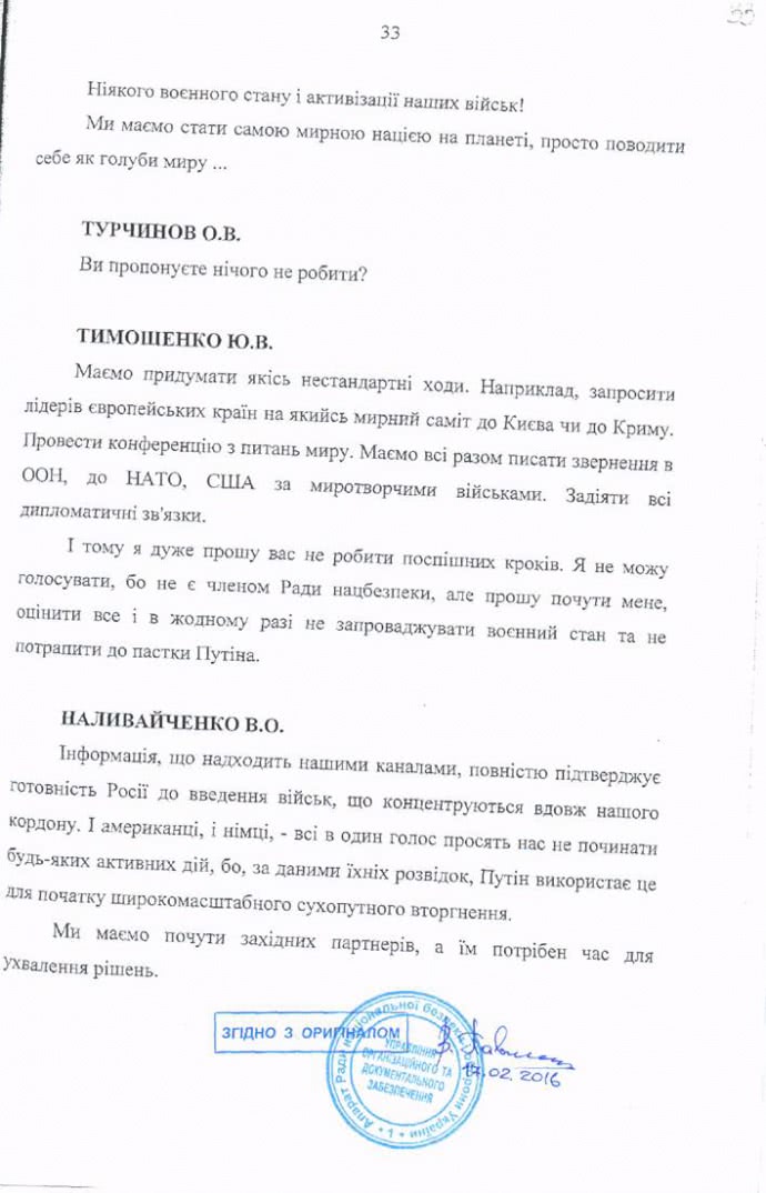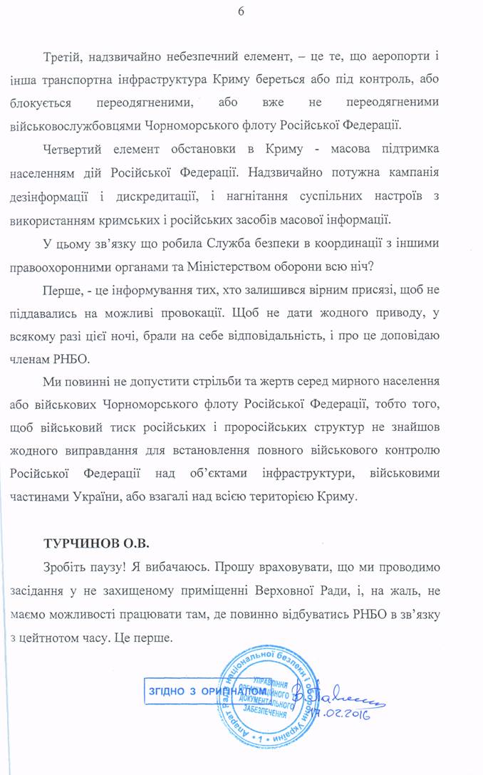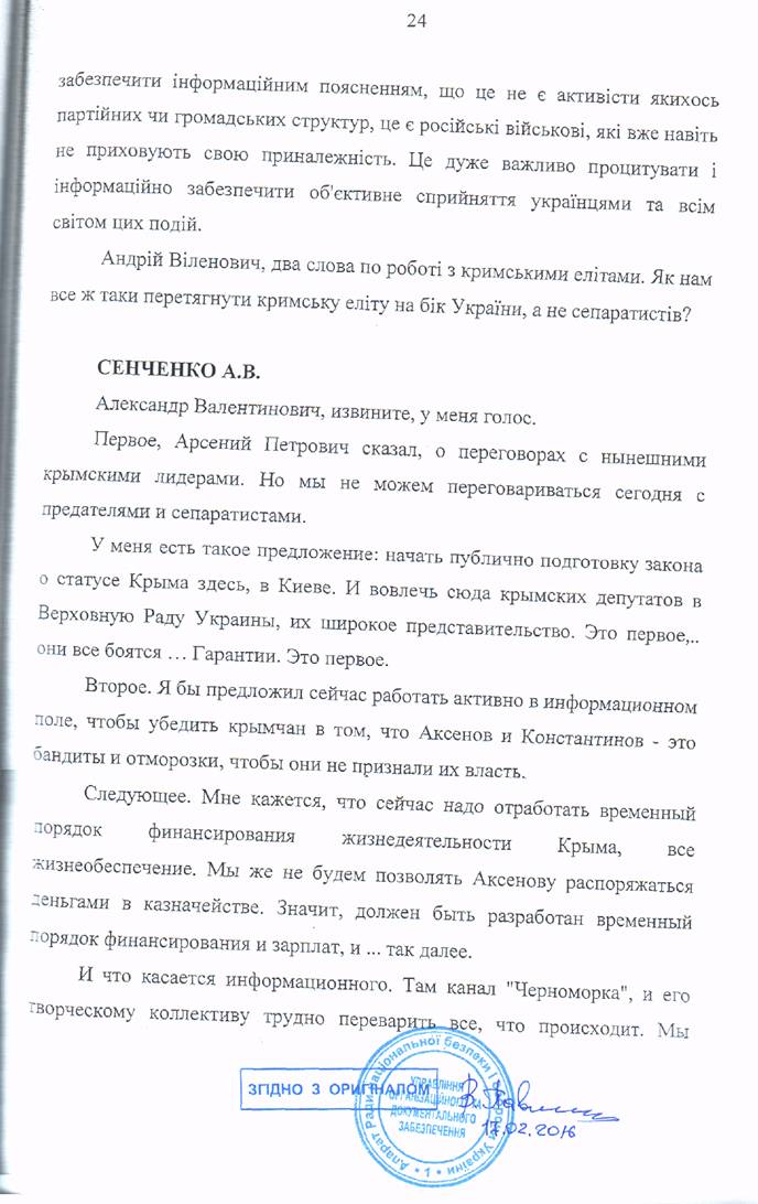 Cтенограма засідання РНБО України у зв'язку з початком російської агресії в Криму