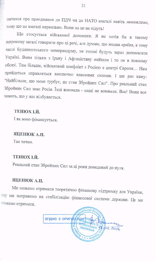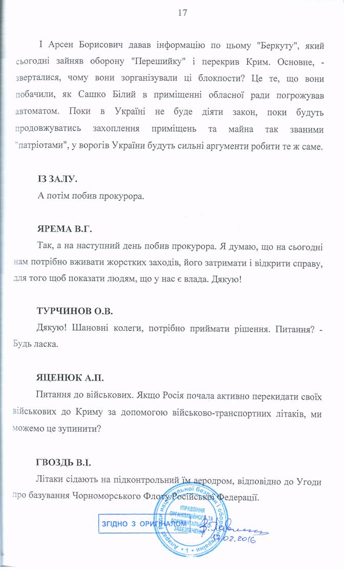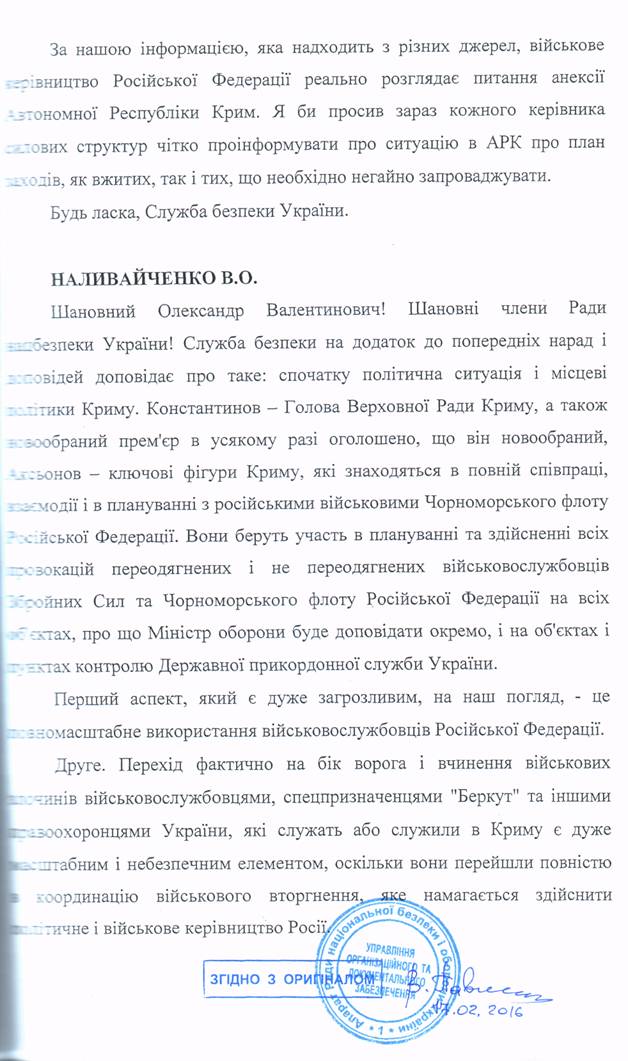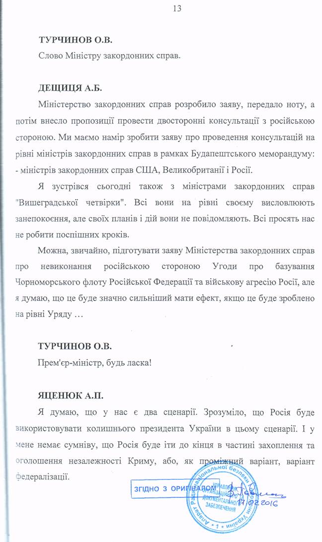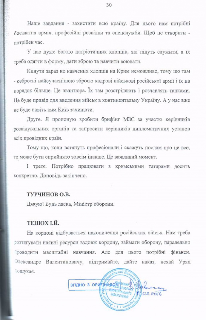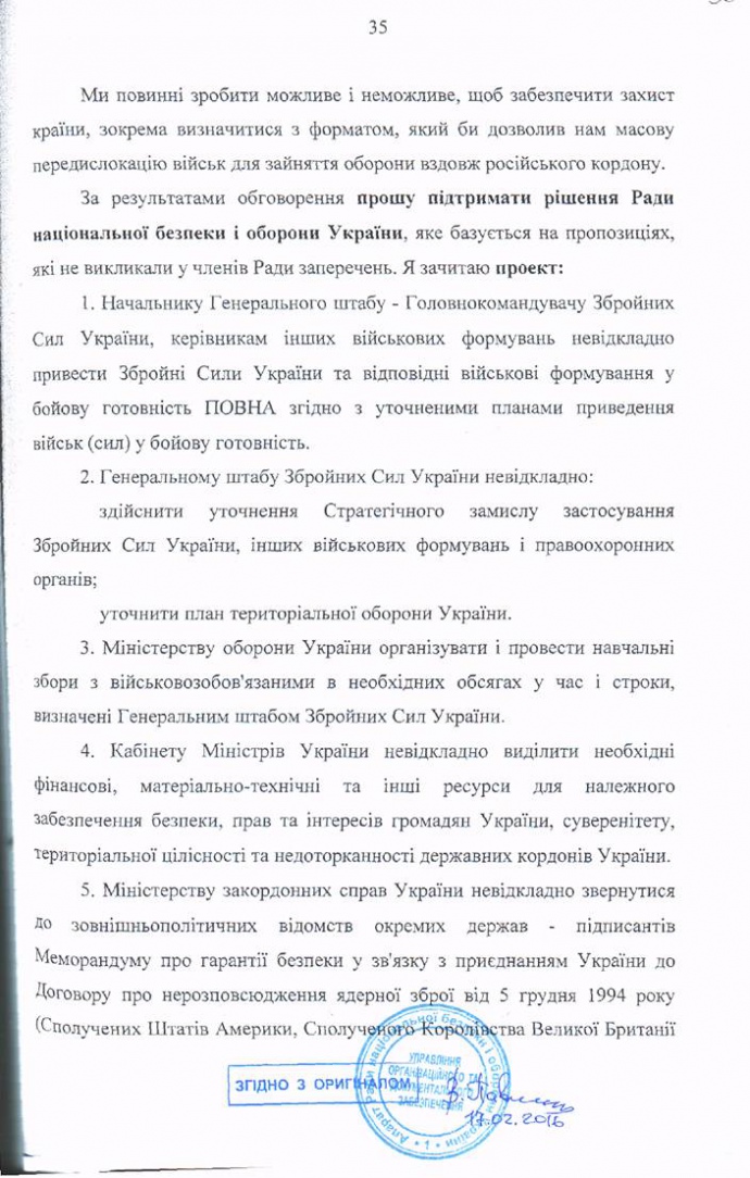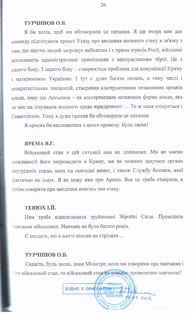 Cтенограма засідання РНБО України у зв'язку з початком російської агресії в Криму