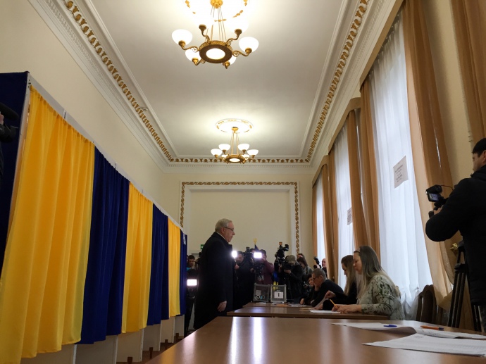 Комиссия быстро находит его фамилию в списке, кандидат расписывается, получает избирательный бюллетень, идет в кабинку – спокойно, сдержанно. Журналисты перегруппировываются, чтобы встретить кандидата возле урн. Вилкул выходит, торжественно бросает бюллетень в урну.