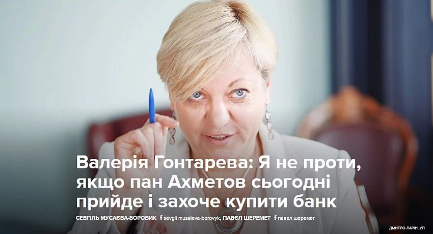 Валерія Гонтарєва: Я не проти, якщо пан Ахметов сьогодні прийде і захоче купити банк