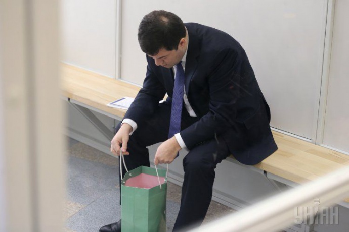 Відсторонений від роботи голова Державної фіскальної служби Роман Насіров, заарештований 7 березня, замінив клітчату ковдру на білу сорочку та чорний костюм.