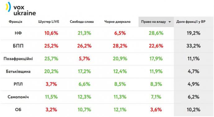 Депутатам яких фракцій віддавали свій ефір ток-шоу. Порівняння долі депутатів у ефірах і парламенті
