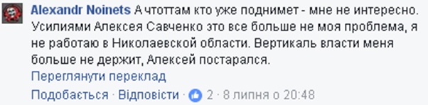 А 8 липня Олександр Нойнець розмістив коментар у ФБ, з якого випливає, що Савченко домігся кадрових перестановок опонентів. Тоді ж про завершення роботи у Миколаївській облорганізації БПП заявив і Бірюков.