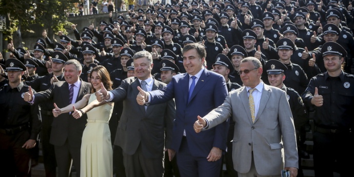 "Народний фронт" записав Саакашвілі у перелік своїх найголовніших ворогів, а апогеєм цього конфлікту став випадок на Раді реформ, коли міністр внутрішніх справ Арсен Аваков жбурнув у колишньго президента склянку із водою. Порошенко спостерігав за перебігом подій і особливо не втручався.