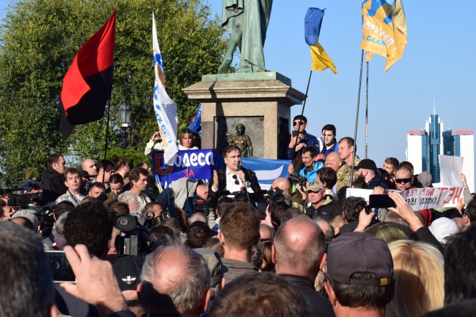 Попри 20-хвилине запізнення, Саакашвілі зустріли оваціями. У відповідь він розійшовся епітетами на адресу Одеси та одеситів, щоправда не всіх.