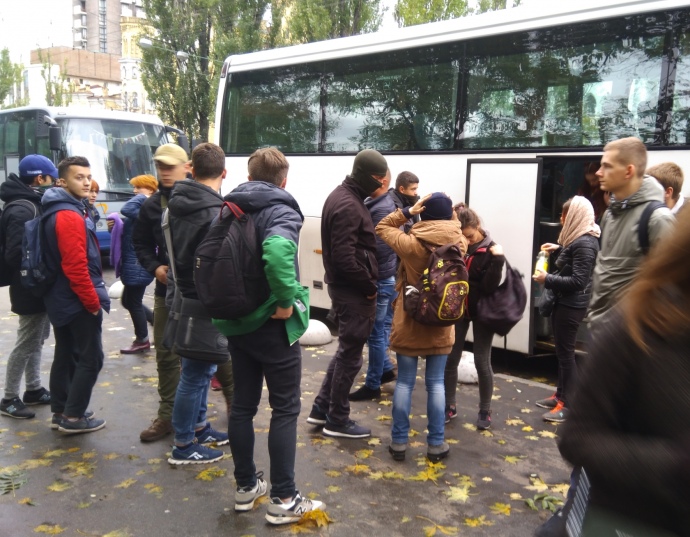 На двоих этим "дядям" не больше 36-38 лет. В субботу, 14 октября, они едут в автобусе, заполненном такими же молодыми, как они, людьми.