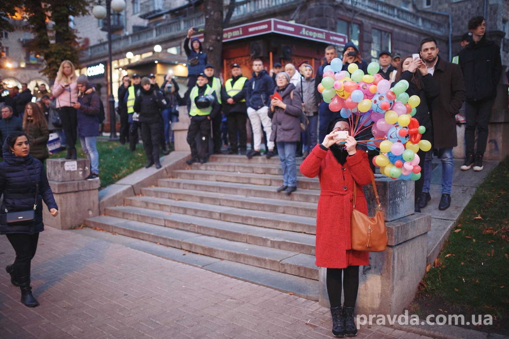 – Внимание, берем факелы, выстраиваемся в колонну, двигаемся по Шевченко – на Крещатик и Майдан. Затем по Сагайдачного спускаемся на Контрактовую. Там будет концерт группы "Кому вниз". Вопросы есть?