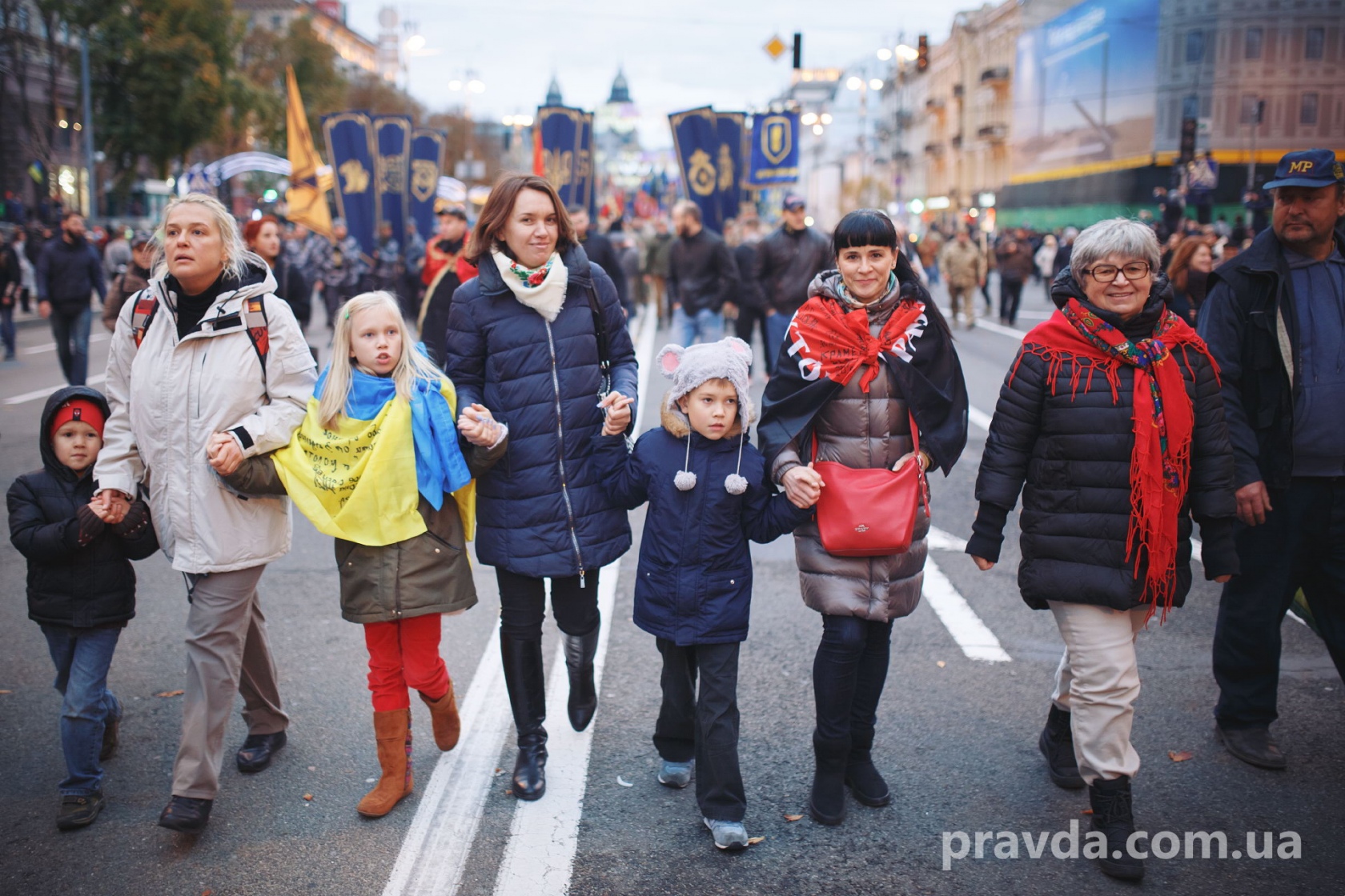 Шествие в Киеве объединило несколько поводов: Покрова, День защитника Украины, День казачества и 75-летие создания УПА. Несмотря на тревожные ожидания, которые озвучивали некоторые СМИ, суббота прошла без эксцессов. За порядком в центре столицы следили 4,5 тысяч полицейских, а в марше приняли участие порядка 10 тысяч человек.