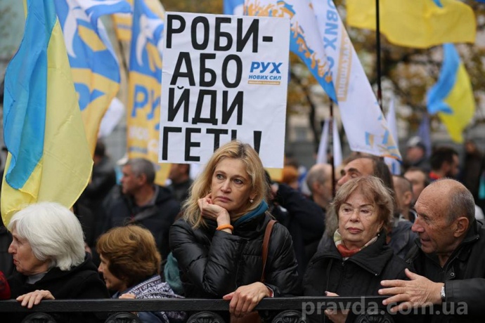 "Якщо не буде жодних рішень на благо народу, Порошенку треба подумати, щоб піти зі своєї посади. У нього ще є час! Це не мій ультиматум, це моя порада", – граючись говорив він, натякаючи на те, що акція може переміститись і на Банкову.
