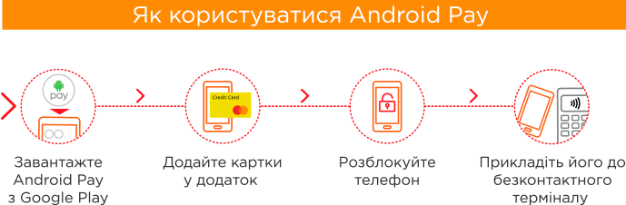 - картку Mastercard або іншої платіжної системи від ПриватБанку чи Ощадбанку (* згодом електронний гаманець Android Pay планують впроваджувати й інші банки в Україні);