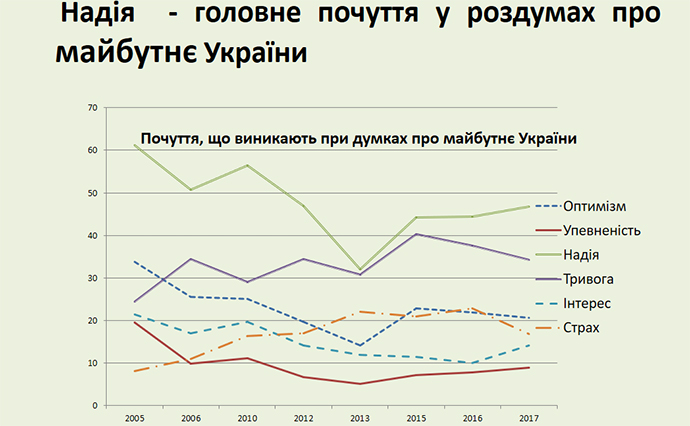 Одним із питань моніторингу Інституту соціології було: "Що ви відчуваєте, коли думаєте про майбутнє України?"