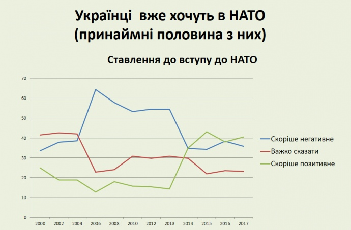 Найбільш радикальні зміни відбулись у ставленні до НАТО. Тому що увесь цей час, до агресії Росії, українці були переконані, що НАТО нам не треба, нам треба нейтральний статус.