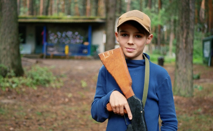 – Ми тут не вчимо дітей воювати, – отрицает очевидное "Вий". – Ми даємо навички, які їм потім знадобляться. Наприклад, перша медична допомога. Також у нас тут поряд кордон з Росією, не так далеко Донбас. Дитина може натрапити на якусь розтяжку, знайти гранату чи уламок бомби. Ми їм розказуємо, що робити. Воювати ми їх не вчимо.