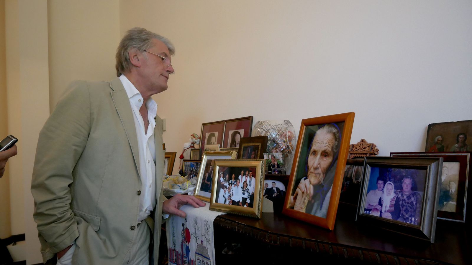 У кімнаті багато фотографій усієї його родини, поставлених на рушник з написом: "Кохайтеся, чорнобриві, та не з москалями".