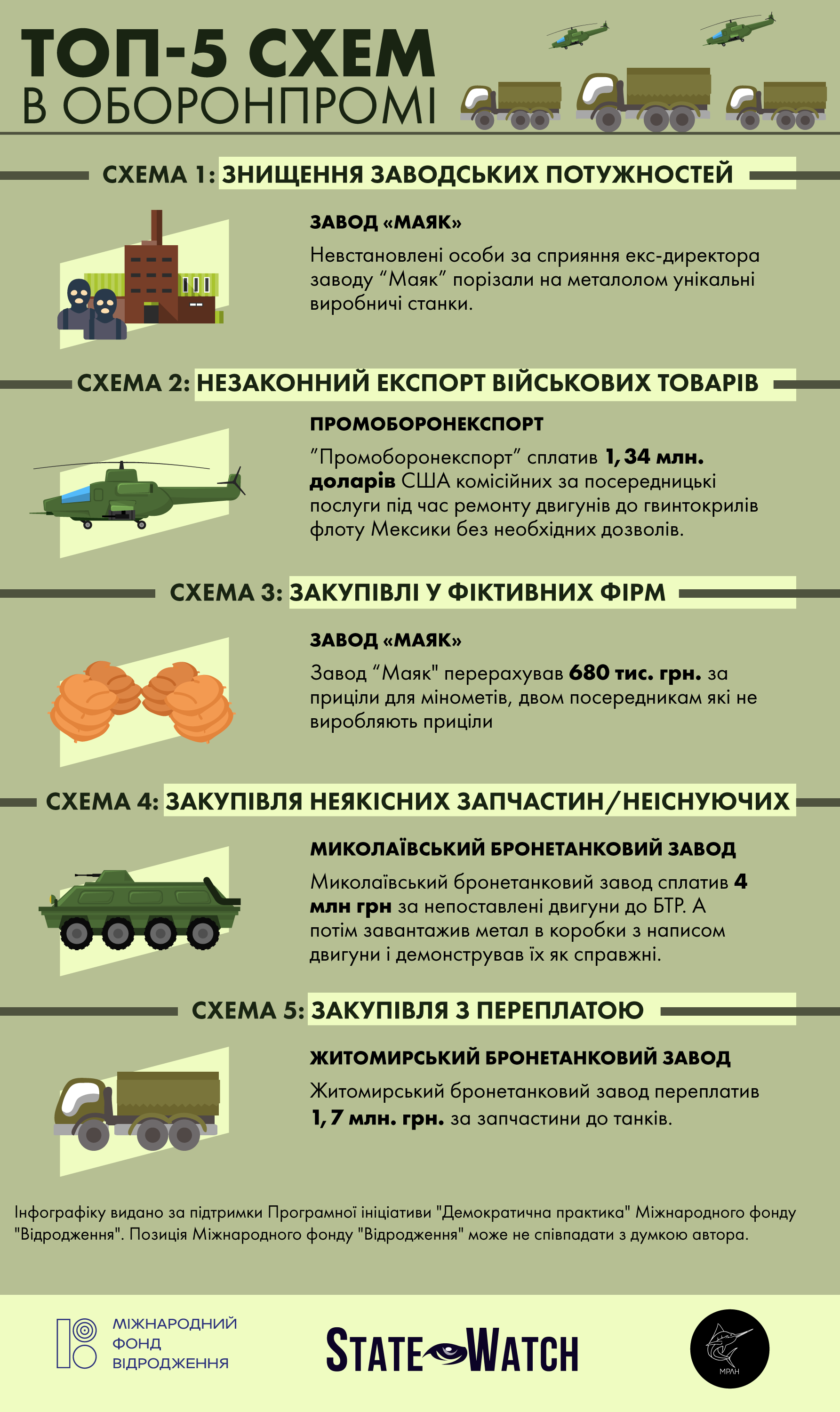 Протягом минулого року через фінансові порушення та корупцію на заводах ОПК слідчі розпочали ще з десяток розслідувань. Як вже зазначалося, "схеми" – типові. Ті самі, про які експерти говорили і у попередні роки.