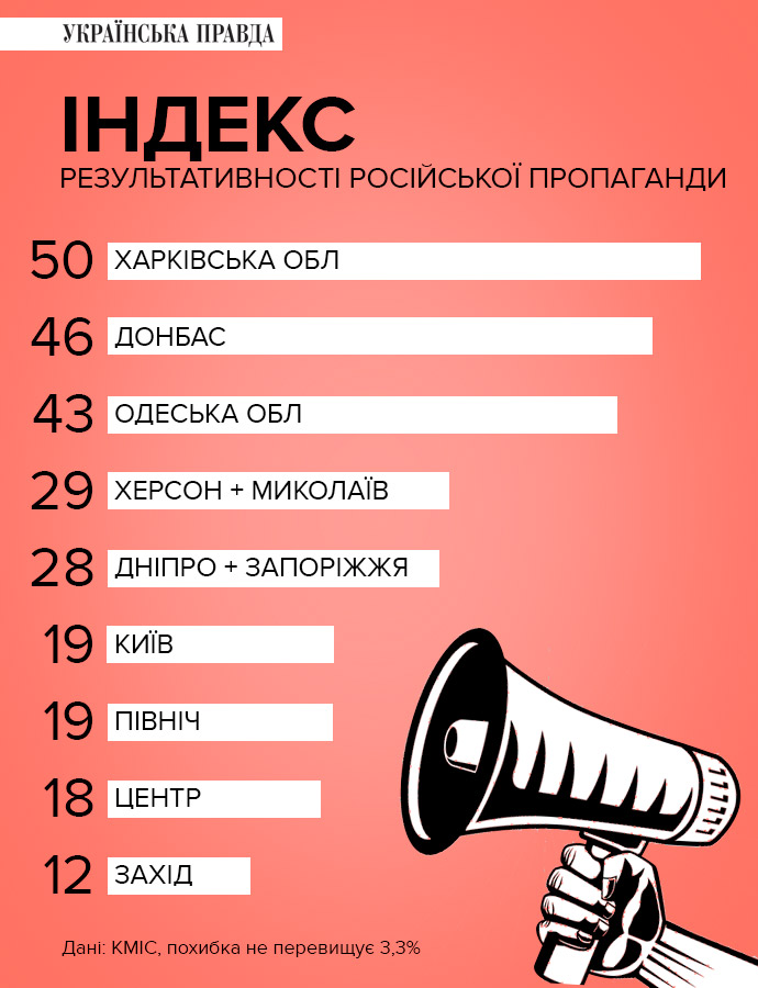 У 2015 році ми розробили свій Індекс результативності російської пропаганди. Він показує, наскільки населення України підтримує головні тези російської пропаганди і міг би бути корисним інструментом для Міністерства інформації.