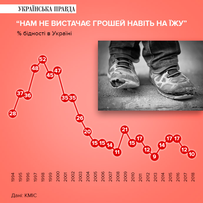 Звісно, 10% бідних – це багато. Удвічі більше, ніж в Росії. Там зараз, якщо не помиляюсь, 5%. У розвинутих країнах взагалі не йдеться про те, щоб не вистачало на їжу. Але з 2000 до 2008 року бідність в Україні впала з 52% до 12%.