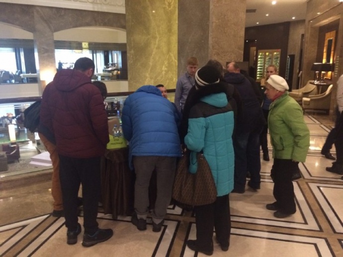 Одна из таких встреч прошла в среду 6 февраля в Харькове. Симпатики кандидата-шоумена собрались в конференц-зале фешенебельного отеля Kharkiv Palace – единственной пятизвездочной гостиницы города. Неофициальную встречу решили провести, не дожидаясь приезда самого Зеленского. Организовывались через соцсети – Facebook и Telegram.