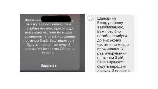 А на кордоні з РФ жителям Сумської області розсилали фейкові повідомлення на мобільні телефони від імені Міністерства оборони з пропозицією прибути до найближчої військової частини.