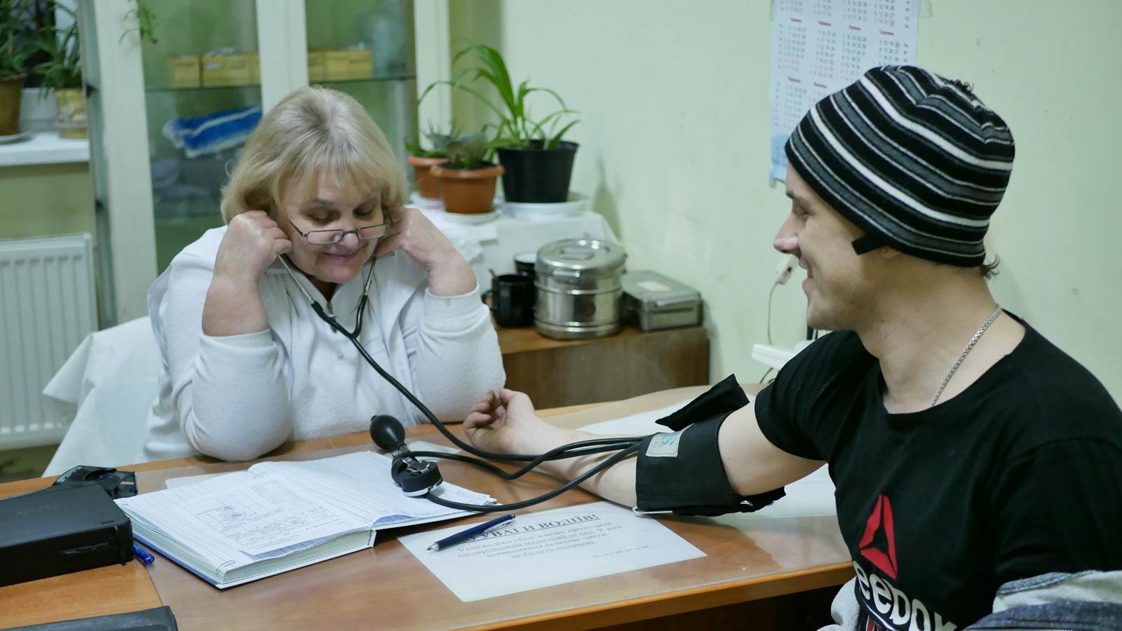 Перед каждым выходом в рейс водители "Киевпастранса" проходят медосмотр на территории депо. Им измеряют давление и проверяют наличие алкоголя с помощью специальных тестеров