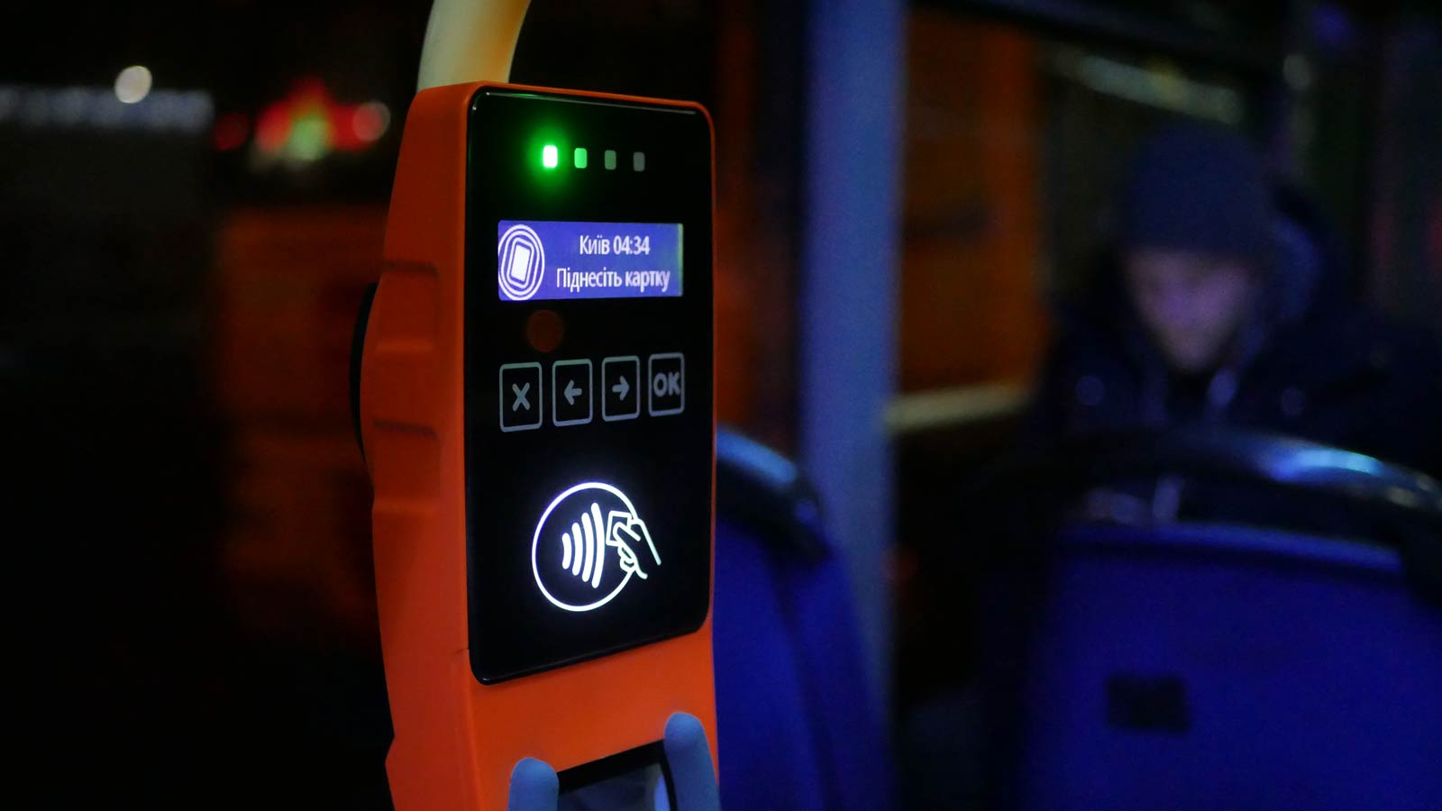 За всю ночь в троллейбусе Александра Радина только два пассажира воспользовались терминалом. Это была пара пенсионеров с "карточкой киевлянина". В "Киевпастрансе" ждут времена, когда большинство пассажиров будет рассчитываться без налички