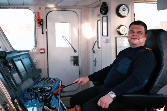 Сменный капитан Александр Маркин с детства бредил морем. Вначале освоил тренерскую профессию, но не нашел в ней душевного спокойствия. Выучился на моряка, и мечта детства сбылась.