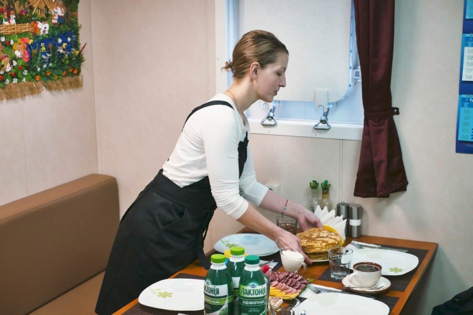 Провизию перед вахтой экипаж закупает сообща. На еду руководство дает по 150 грн в день на человека.