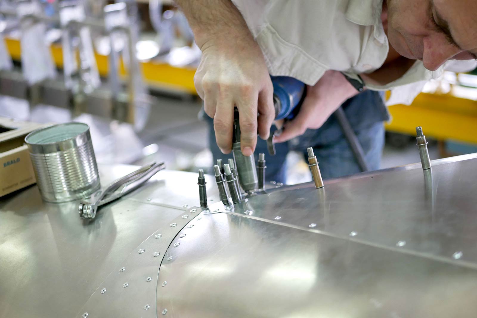 [BANNER2]Алюминиевые листы в цеху скрепляют традиционным методом – при помощи заклепок.