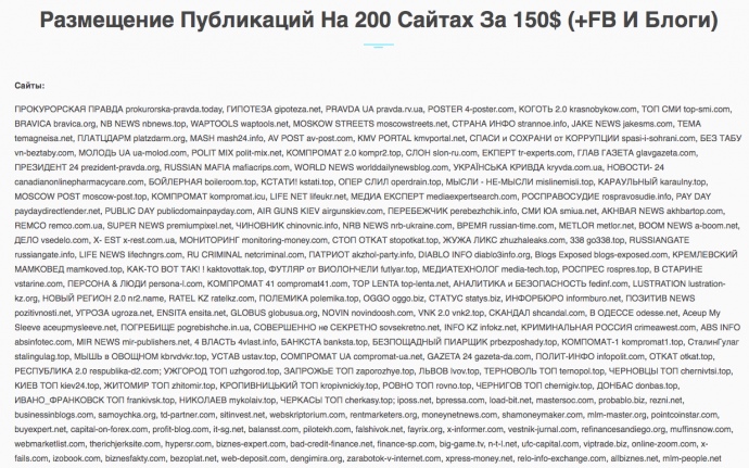 В інтернеті існує тисячі "зливних бачків" – це мережі сайтів, які копіюють тексти та новини інших ЗМІ, часто спотворюючи їхні заголовки. Поміж тим за гроші вони публікують будь-який потрібний вам текст, а за додаткову оплату – розганяють його у своїх групах у соцмережах.