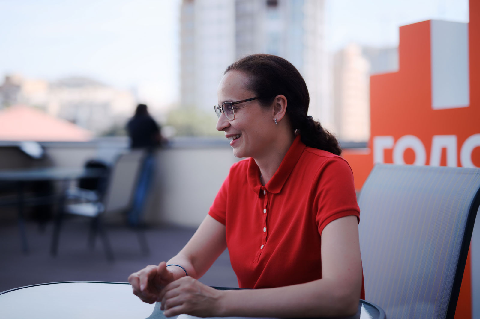 "Ми вже бачимо, що навіть у "Слуги народу" трохи забираємо. Раніше ми були п'ятими, тепер стали третіми. Це значить, що у всіх, хто нижче, ми під'їли", – пояснює Клименко, сидячи на балконі нового офісу "Голосу" на вулиці Жилянській.
