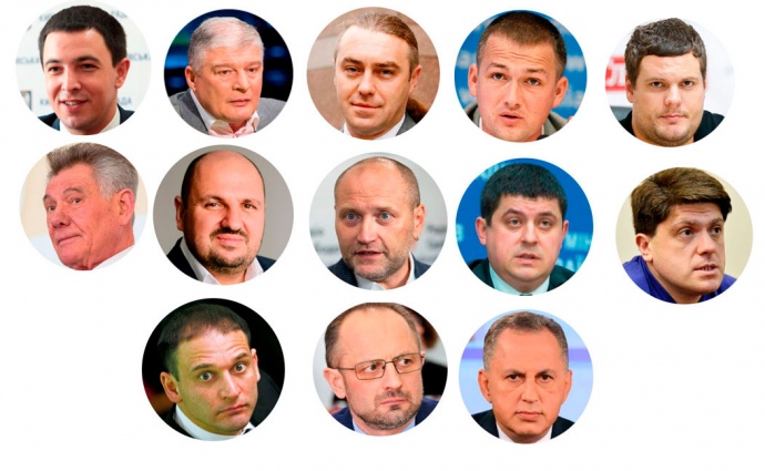 Також програли вибори секретар Київради Володимир Прокопів, Євген Червоненко, свободівці Ігор Мірошниченко, Юрій Левченко, Андрій Іллєнко, колишній мер Києва Олександр Омельченко, фігурант бурштинової справи Борислав Розенблат, його тезка Борислав Береза, голова фракції "Народний фронт" Максим Бурбак, нардеп від БПП Іван Винник, Дмитро Добкін, Роман Безсмертний та Борис Колесніков (див. фото зліва направо. – ред. ).