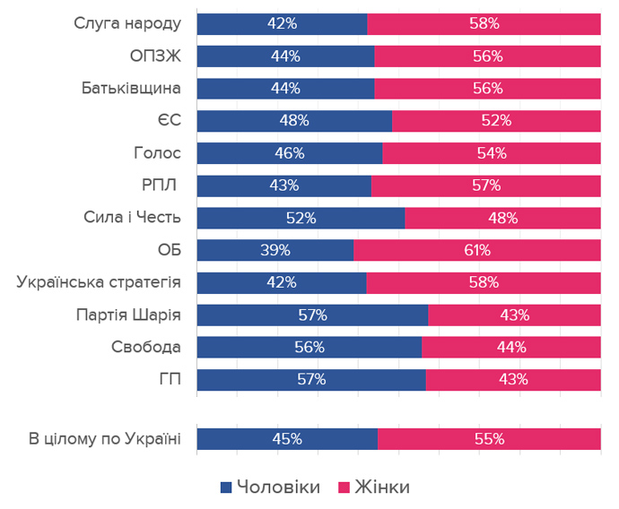Зважаючи на те, що в структурі виборців загалом переважають жінки, значна кількість чоловіків серед прихильників "Сили і честі" говорить про серйозне зміщення електорату.