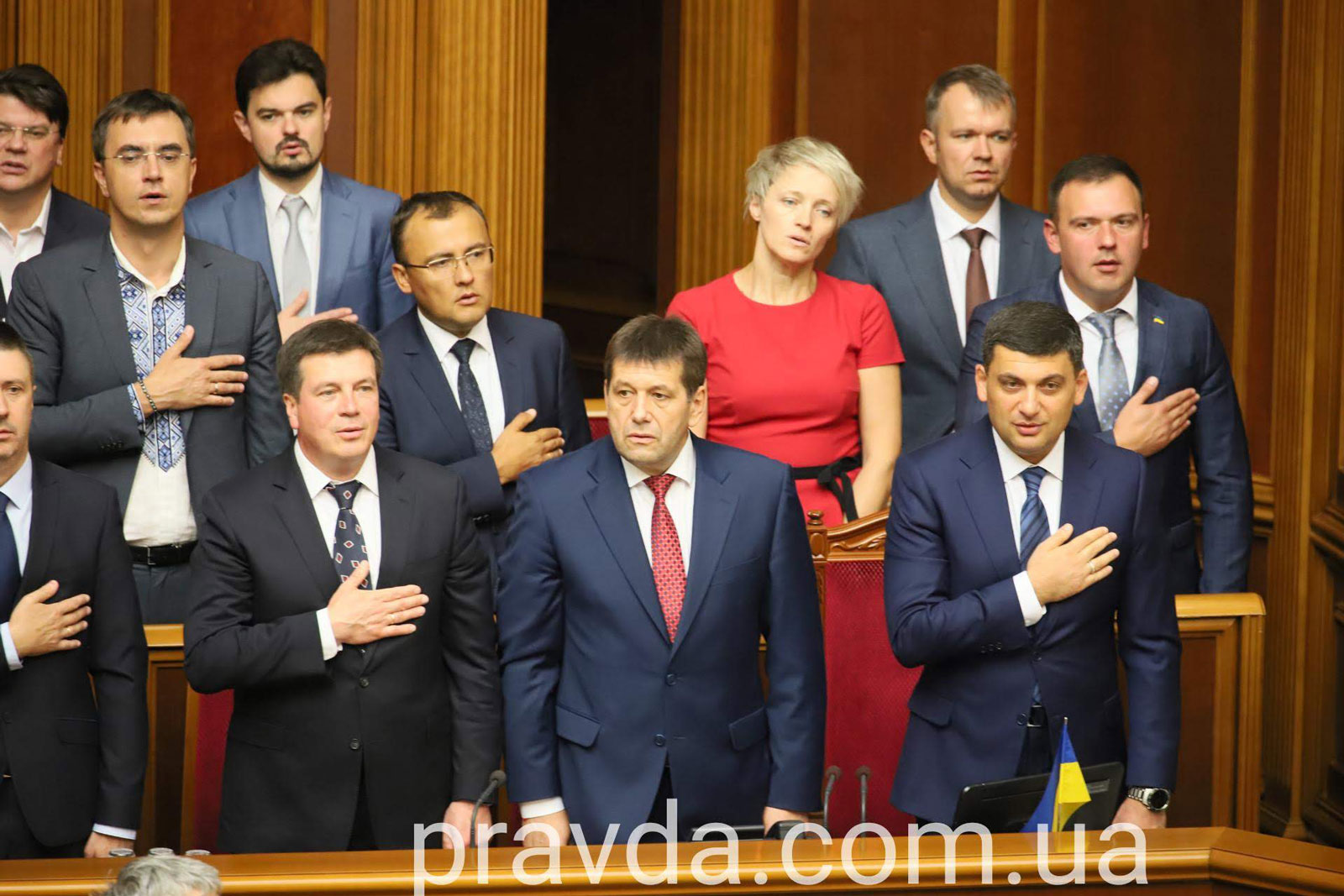 Кабмін Володимира Гройсмана прийшов у Раду, щоб востаннє проспівати гімн з урядової ложі і піти у відставку