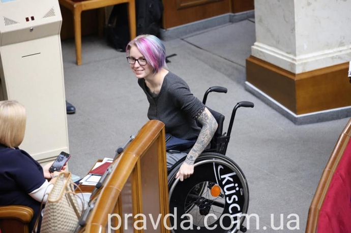 Для волонтерки Яни Зінкевич виділили спеціальне місце, куди б вона могла комфортно діставатися на візку. Хоча кулуари і приміщення Ради у більшості своїй залишаються не пристосованими для людей з інвалідністю