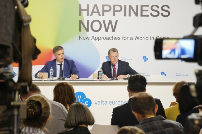 Перед цим міністр наговорив був зайвого щодо виборів на Донбасі і формули Штайнмайєра, тож тепер Пристайко дещо ніяково поглядає на спецпредставника США з питань Донбасу Курта Волкера, з яким вони дають спільний брифінг.