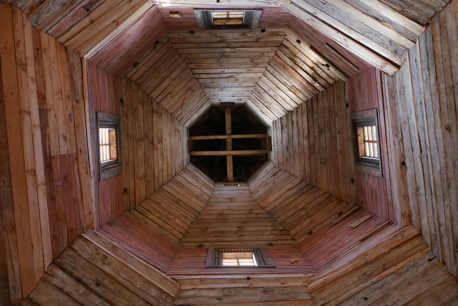 Под ногами приветственно скрипит пол. Сквозь крестообразные окна храм наполняет солнечный свет. Под высоким куполом лучи перемешиваются с роем мошкары. Это беззвучное мельтешение гипнотизирует.