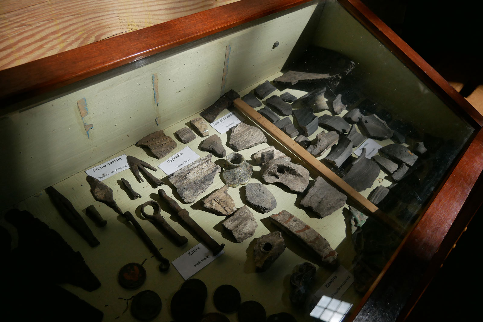 Внутри церкви много предметов быта казацких времен, найденных возле храма. По словам археологов, на этом месте обнаружено много культурных слоев, включая языческие капища