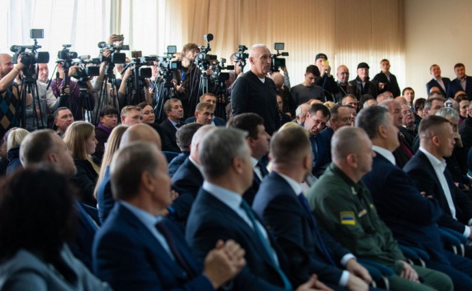 У конференц-залі ХАЗу на презентацію зібралося близько 200 осіб – серед них нардепи від "Слуги народу", голова області Юлія Світлична, голова облради Сергій Чернов, екснардепи Віталій Хомутиннік і Роман Семенуха, бізнесмени Всеволод Кожем'яка і Олександр Ярославський та інші.