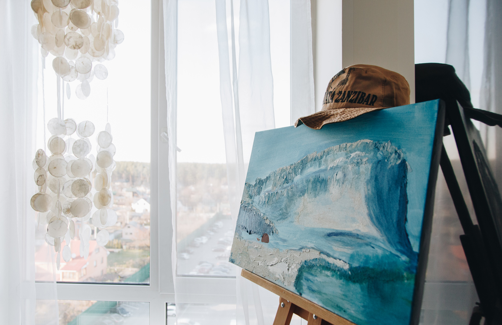 У квітні Таня планувала підкорити Північний полюс. Уявіть: експедиція до нульового кілометра планети на лижах! Вона так сильно туди хотіла, що навіть намалювала картину олією: темна крапка – це її намет. Але, як ви розумієте, цій мрії поки здійснитися не судилося.↓
