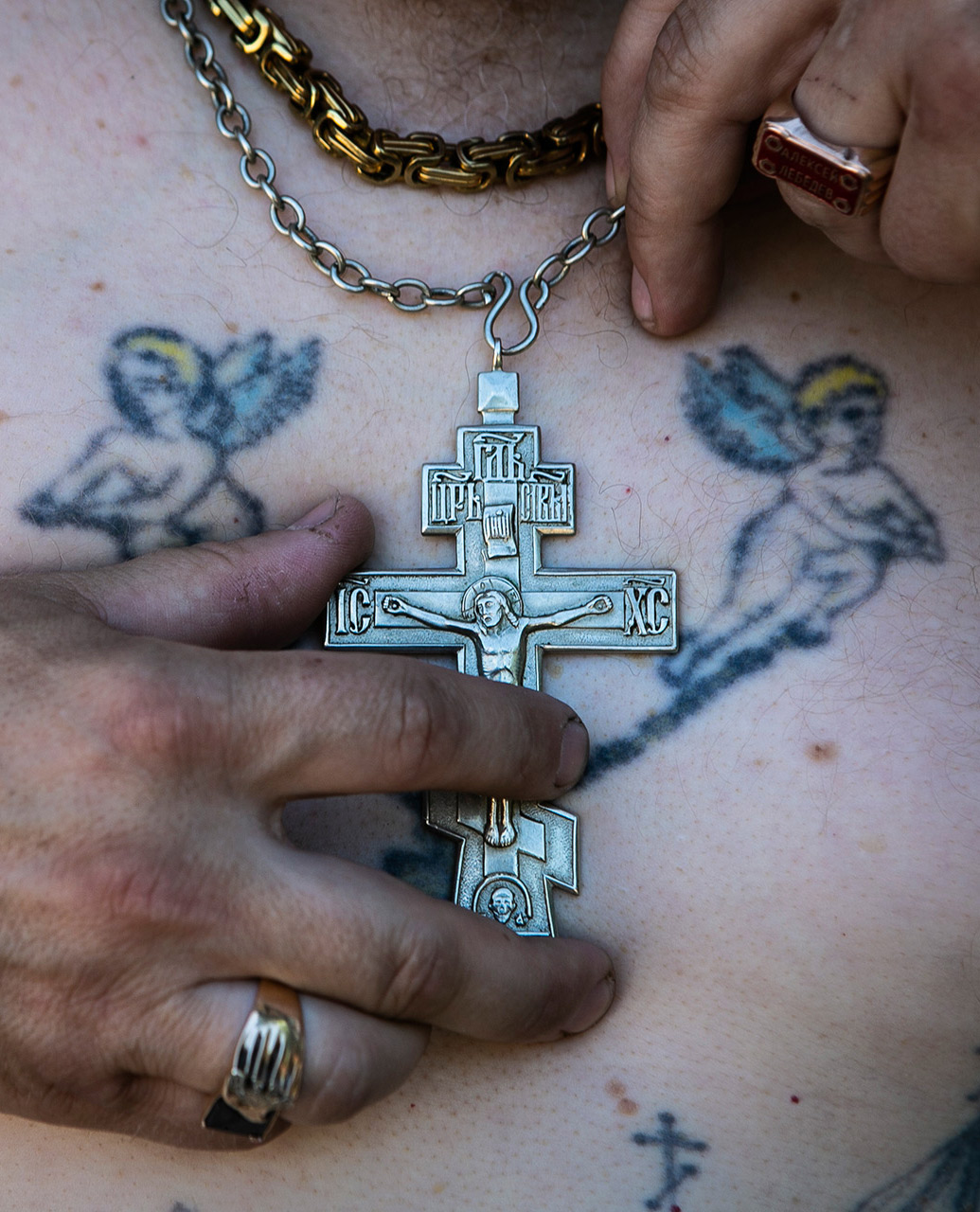 – Парень до этого никогда не делал (татуировок). Долго уламывал. Он хорошо рисует, у него дар есть, – объясняет Алексей.