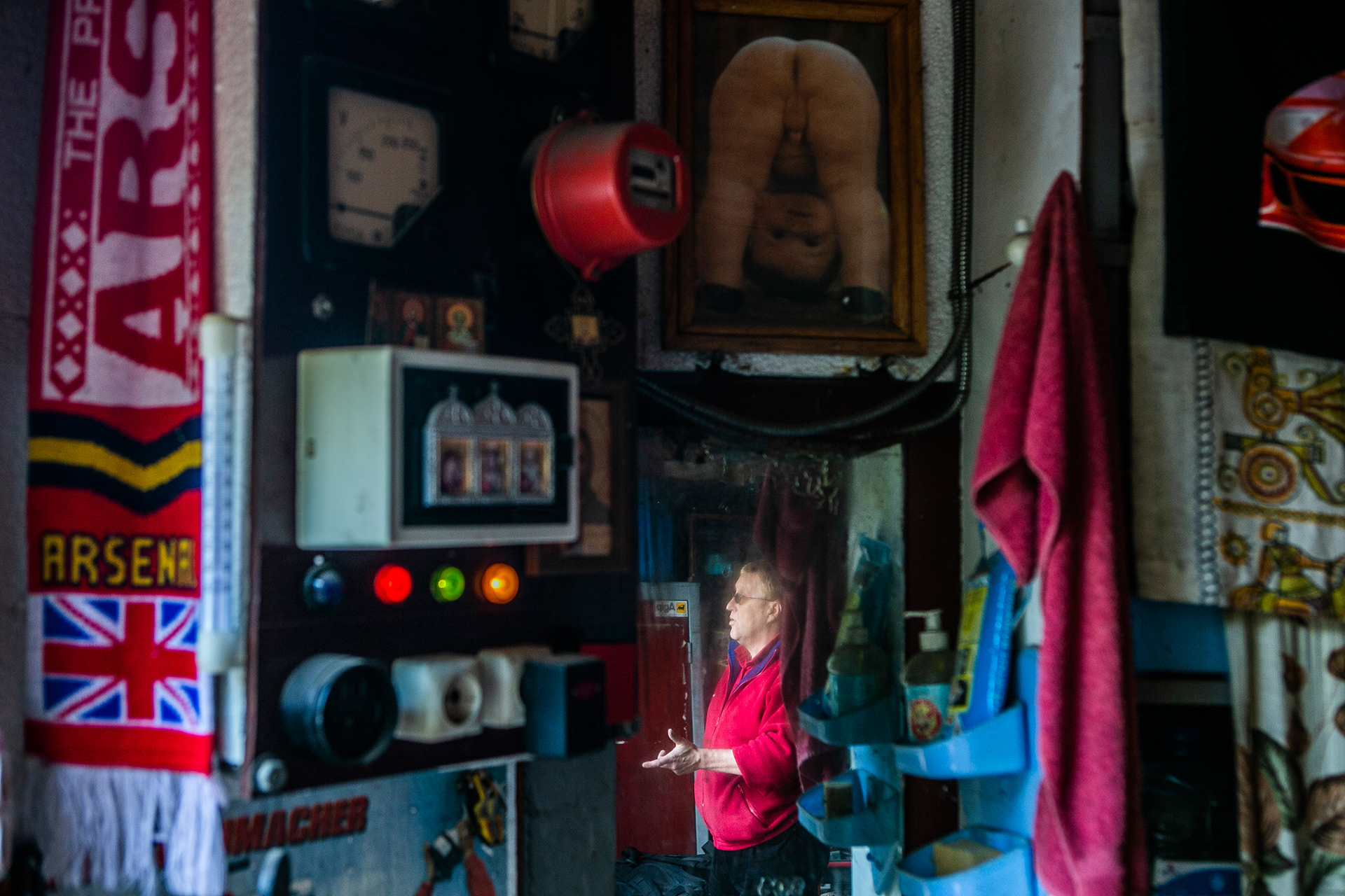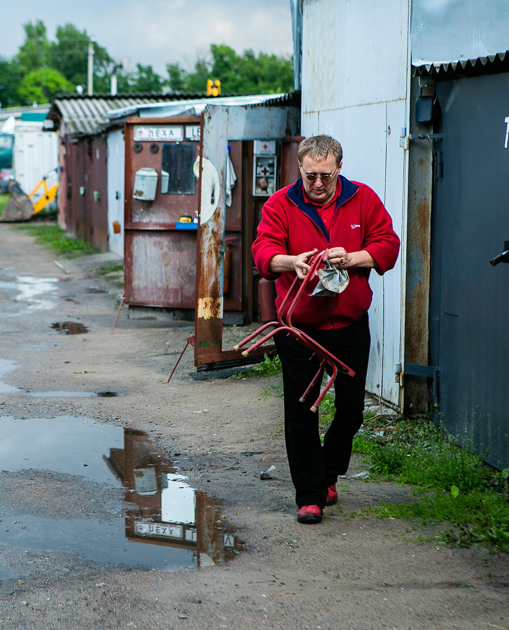 Владелец гаражей – автослесарь Алексей Лебедев – человек с насыщенной биографией и разноплановыми увлечениями. Страсть к немецким машинам уживается в нем с ностальгией по СССР, ЗОЖ – с коллекционированием алкоголя, а понты из бородатых анекдотов – с потомственной интеллигентностью.