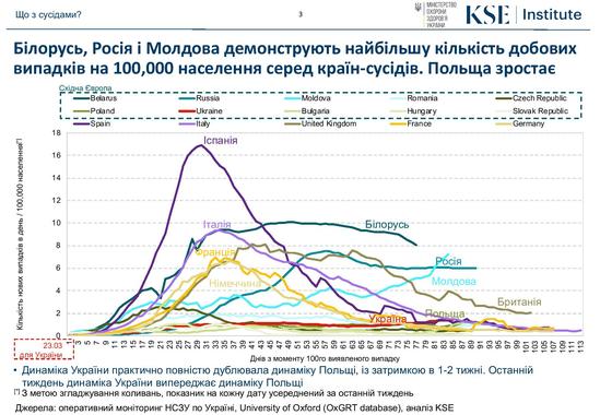 За останній тиждень Україна за динамікою поширення хвороби випередила Польшу, з якою увесь час епідемії йшла майже пліч-о-пліч.