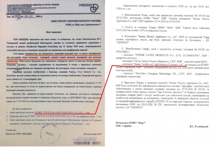 Цікаво також і те, що костюми для аваківського "Форт" постачала та ж китайська компанія, що і "золоті" костюми Міністерству охорони здоров’я Степанова.